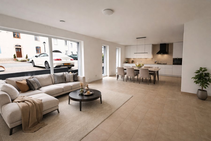 L'espace de vie se compose d'un vaste séjour avec cuisine ouverte, idéal pour créer une ambiance moderne, conviviale et chaleureuse.