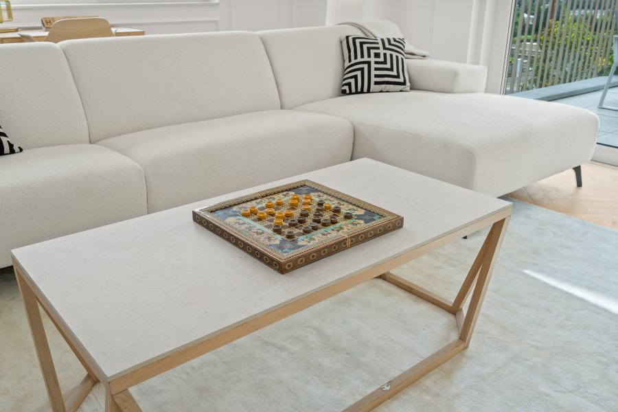 - Sur les terrasses, dalles en céramique de grande taille 90 cm x 90 cm