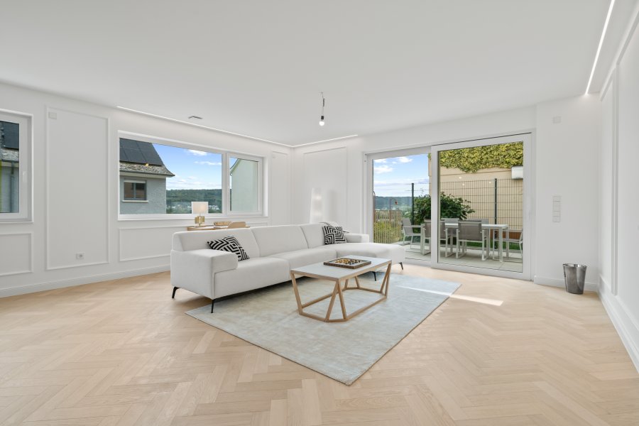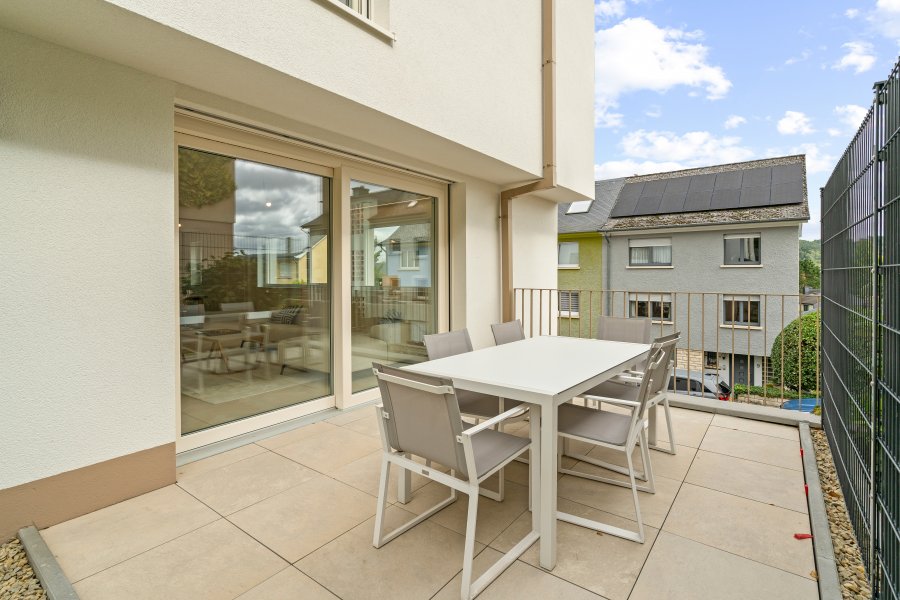 A proximité de Bridel, nous réalisons un nouveau projet sur les hauteurs de Steinsel « BELLE-VUE ». Niché dans la colline avec une vue d'exception sur la vallée de Steinsel à la lisière de forêt.Appartement d'exception récemment achevé, situé en rez-de-jardin, bénéficiant d'un jardin privatif. Il se compose de trois chambres à coucher, chacune offrant un accès direct à la terrasse et au jardin, pour un confort de vie optimal en harmonie avec l'extérieur.